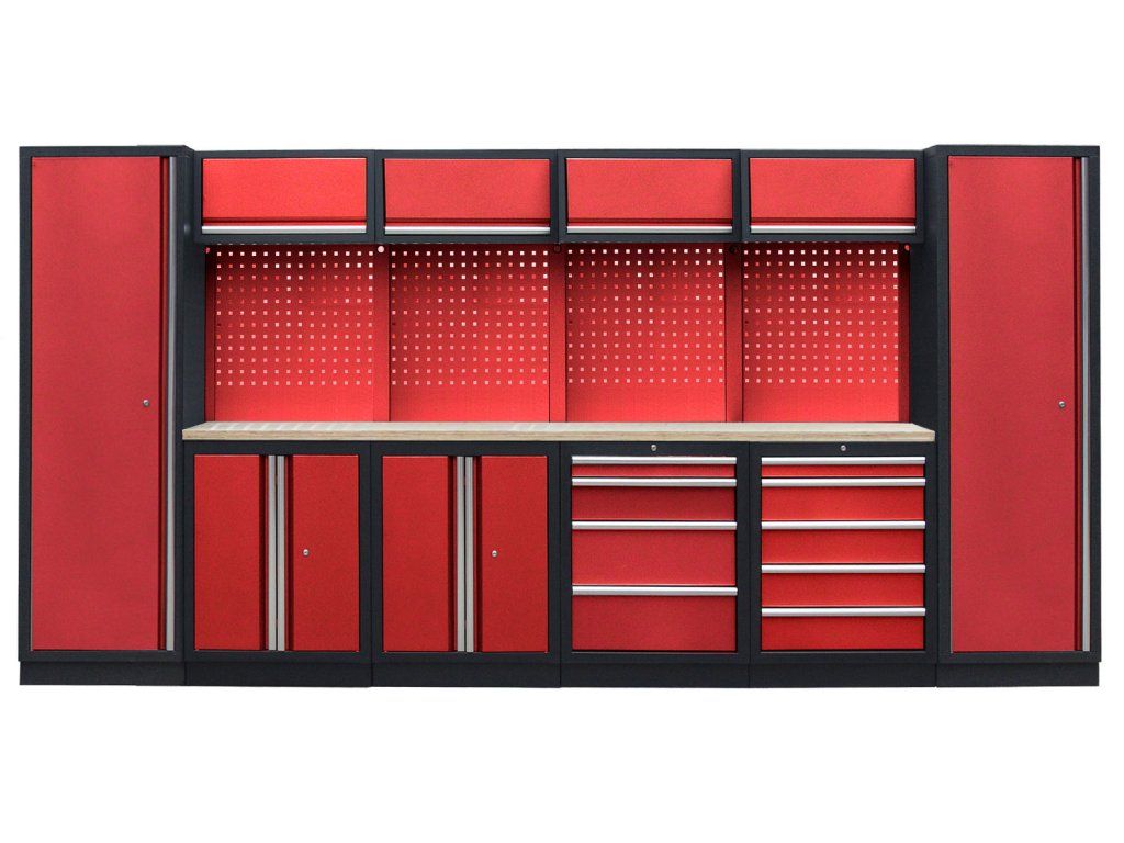 Sestava nábytku v sobě skrývá dostatečné množství úložného prostoru pro vaše nářadí, autotechniku i dílenské vybavení. V kombinaci s bytelnou pracovní deskou získáte multifunkční stěnu, se kterou vám půjde práce od ruky ve všech směrech.