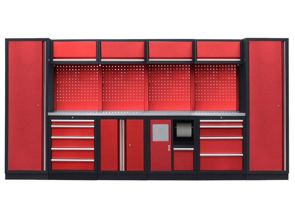 Sestava nábytku v sobě skrývá dostatečné množství úložného prostoru pro vaše nářadí, autotechniku i dílenské vybavení. V kombinaci s bytelnou pracovní deskou získáte multifunkční stěnu, se kterou vám půjde práce od ruky ve všech směrech.