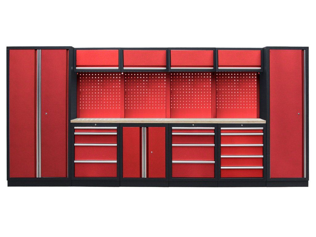 Sestava nábytku v sobě skrývá dostatečné množství úložného prostoru pro vaše nářadí, autotechniku i dílenské vybavení. V kombinaci s bytelnou pracovní deskou získáte multifunkční stěnu, se kterou vám půjde práce od ruky ve všech směrech.