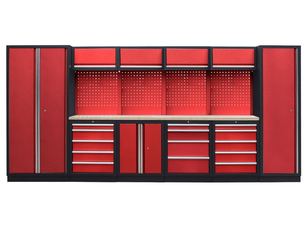 Sestava nábytku v sobě skrývá dostatečné množství úložného prostoru pro vaše nářadí, autotechniku i dílenské vybavení. V kombinaci s bytelnou pracovní deskou získáte multifunkční stěnu, se kterou vám půjde práce od ruky ve všech směrech.