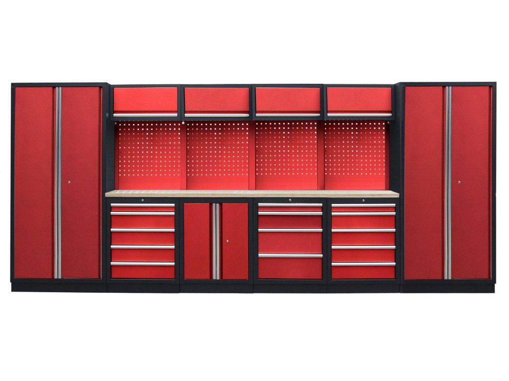 Sestava nábytku v sobě skrývá dostatečné množství úložného prostoru pro vaše nářadí, autotechniku i dílenské vybavení. V kombinaci s bytelnou pracovní deskou získáte multifunkční stěnu, se kterou vám půjde práce od ruky ve všech směrech.