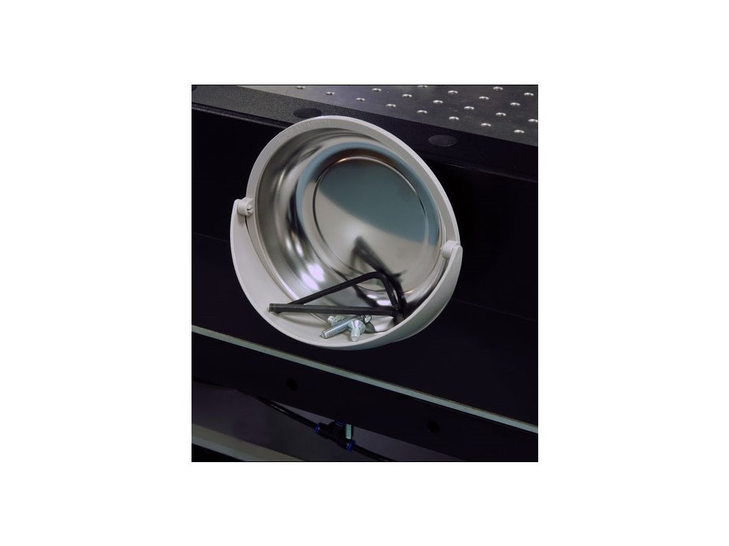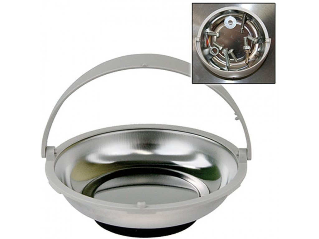 Magnetická miska s průměrem 150 mm na montážní materiál. Miska je opatřena plastovým límcem.