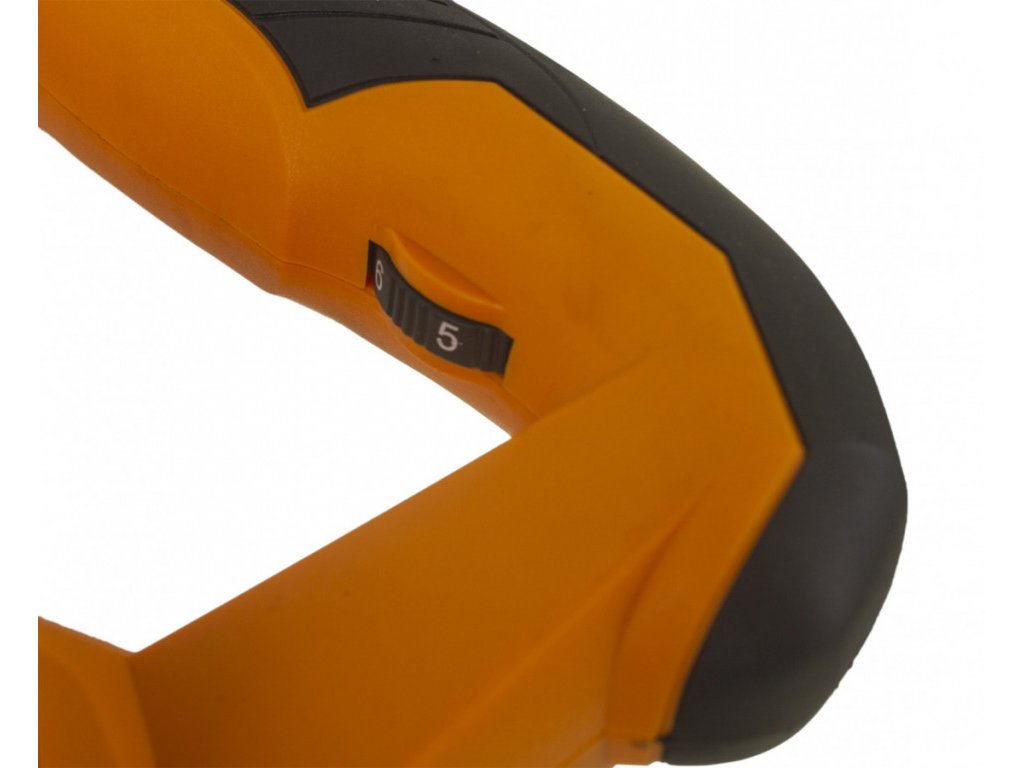 Na jedné z rukojeti se nachází bezpečnostní spínač, který se stará o bezpečnost aby se zařízení nerozběhlo kdy nemá.