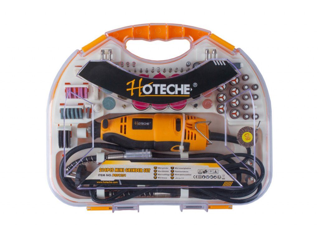 Bruska je balena v praktickém průhledném kufříku, kde je vše uspořádáno tak, abychom měli dokonalý přehled.
