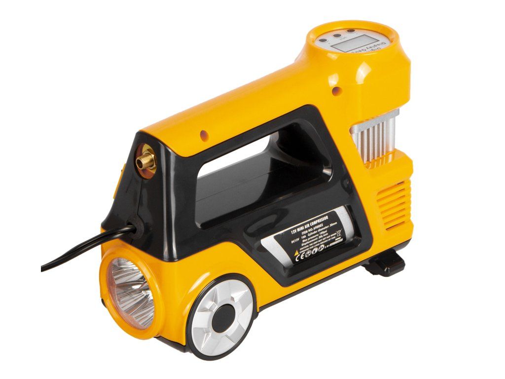 Kompresor je vybaven digitálním displejem horní části a praktickou svítilnou.