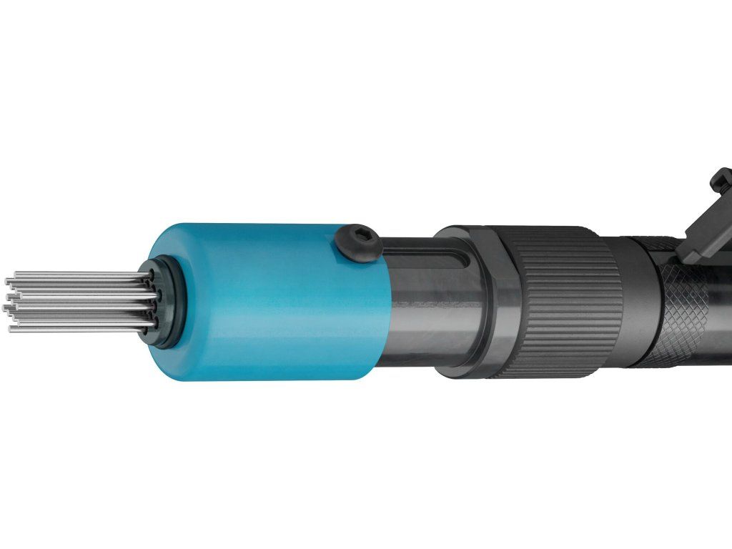 Pneumatický jehlový oklepávač, rychlost zdvihu 3000 zdvihů/min., délka 235,6 mm, 13 ks tenkých jehel. Spotřeba vzduchu 48,1 l/min.