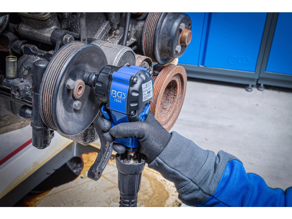 Kompaktní a výkonný pneumatický rázový utahovák BGS 7646 je určený pro rychlé a efektivní povolování a utahování šroubů v autoservisech i průmyslové výrobě.