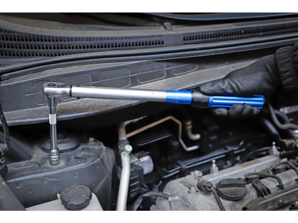 Momentový klíč je vyroben z kvalitní chrom-vanadiové oceli s pracovním rozsahem 20 - 120 Nm.
