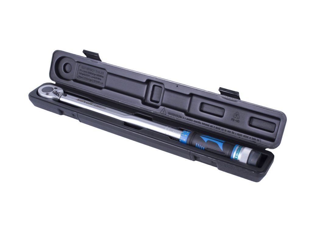 Profesionální momentový klíč 1/2", rozsah momentu 40 - 210 Nm, délka 535 mm, pravý a levý chod. Včetně plastového pouzdra.
