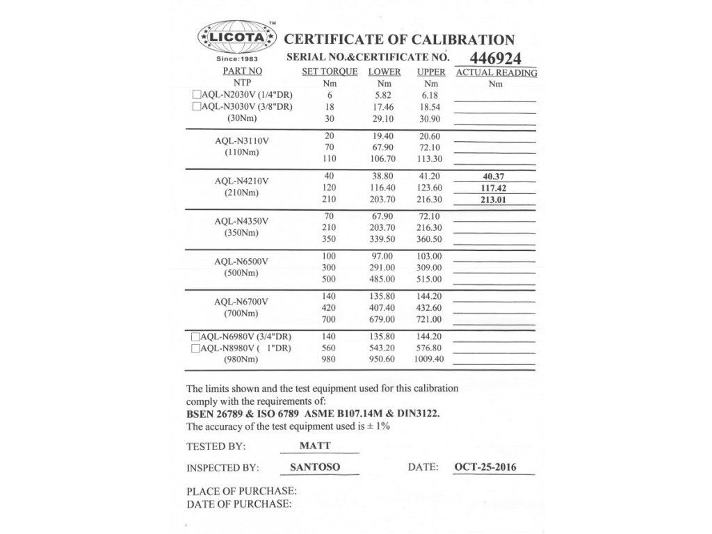 Ke klíči dodáván i certifikát kalibrace viz. foto.