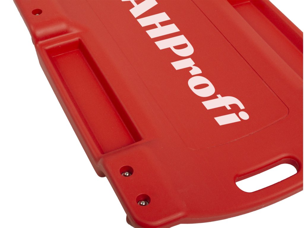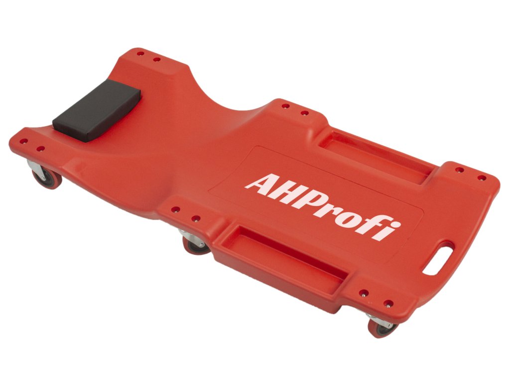 Montážní lehátko s vynikající ergonomickou konstrukcí a měkkým podhlavníkem je opatřené madlem pro snadné přenášení.