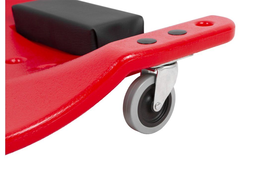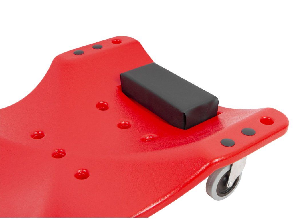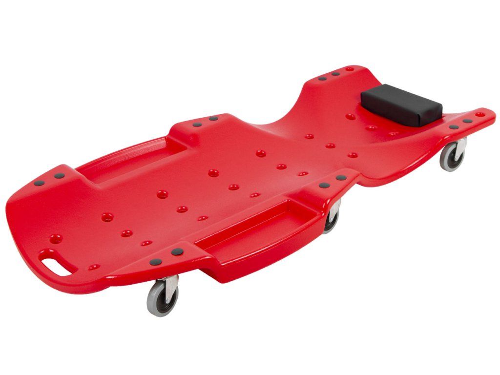 Plastová konstrukce zajišťuje dostatečnou pevnost a nosnost až 150 kg. Lehátko je vybaveno dvojicí odkládacích prostor na šroubky a drobné ruční nářadí, které tak budete mít při práci neustále u sebe. Ergonomicky tvarovaná konstrukce ve spojení s podhlavníkem zajistí pohodlné provádění servisních prací.