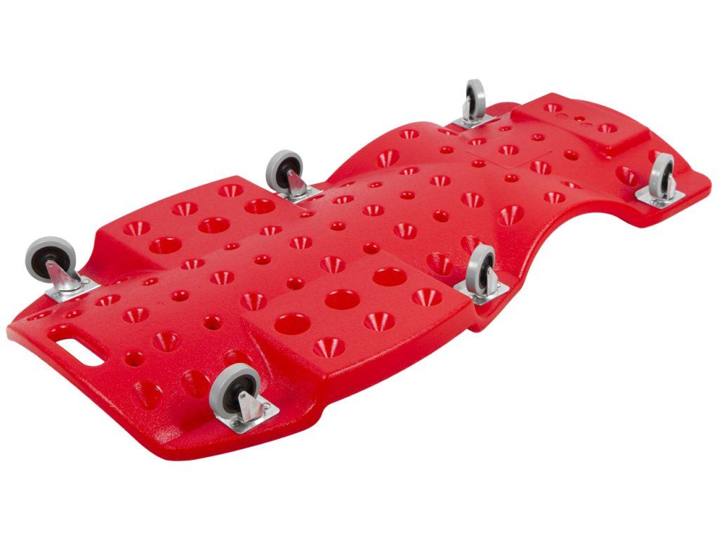 Montážní lehátko XXL s vynikající prostornou ergonomickou konstrukcí, nosností 150 kg a měkkým podhlavníkem je opatřené madlem pro snadné přenášení.