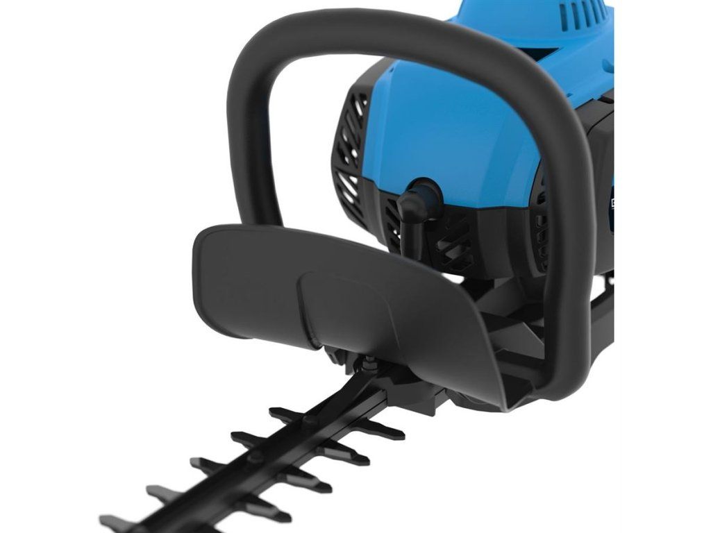 Benzinové nůžky na živý plot, jednoválcový 2taktní OHV motor 0,75 kW, reverzní startovací systém, délka lišty 770 mm, 3polohové otáčení zadní rukojeti, precizně zpracované protiběžné nože. Rozměr 1.200 x 245 x 230 mm, váha 5,4 kg.