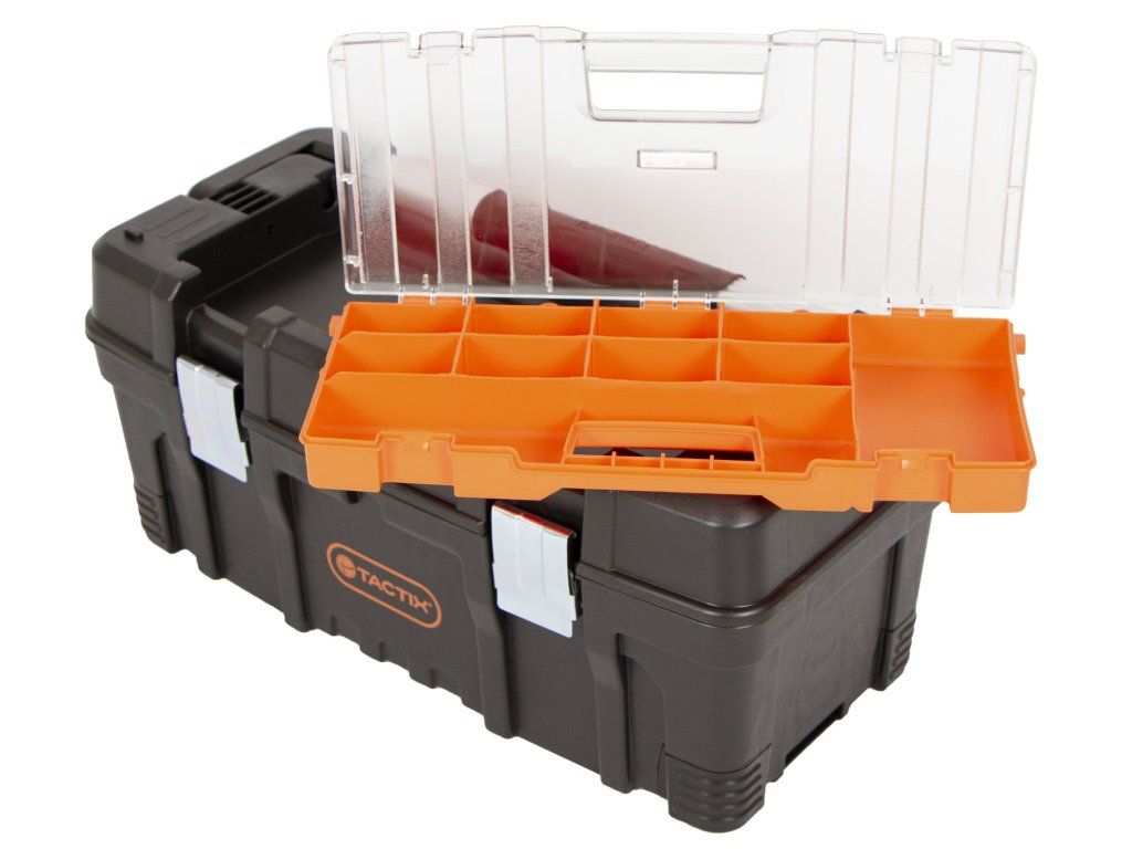Vrchní box je odnímatelný pomocí bočních západek a vybaven organizérem na drobnější materiál (šrouby apod.), vrchní box lze lehce vyjmout.
