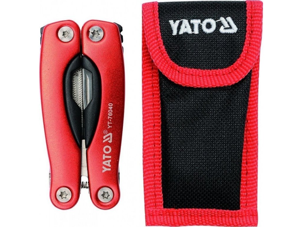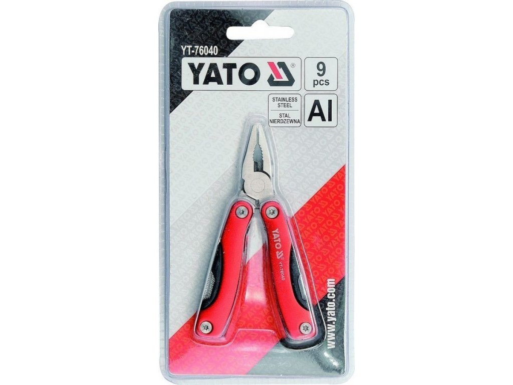 Skládací víceúčelový nůž, 9 komponentů z nerezové oceli, kov, eloxovaný rám, taštička na suchý zip.