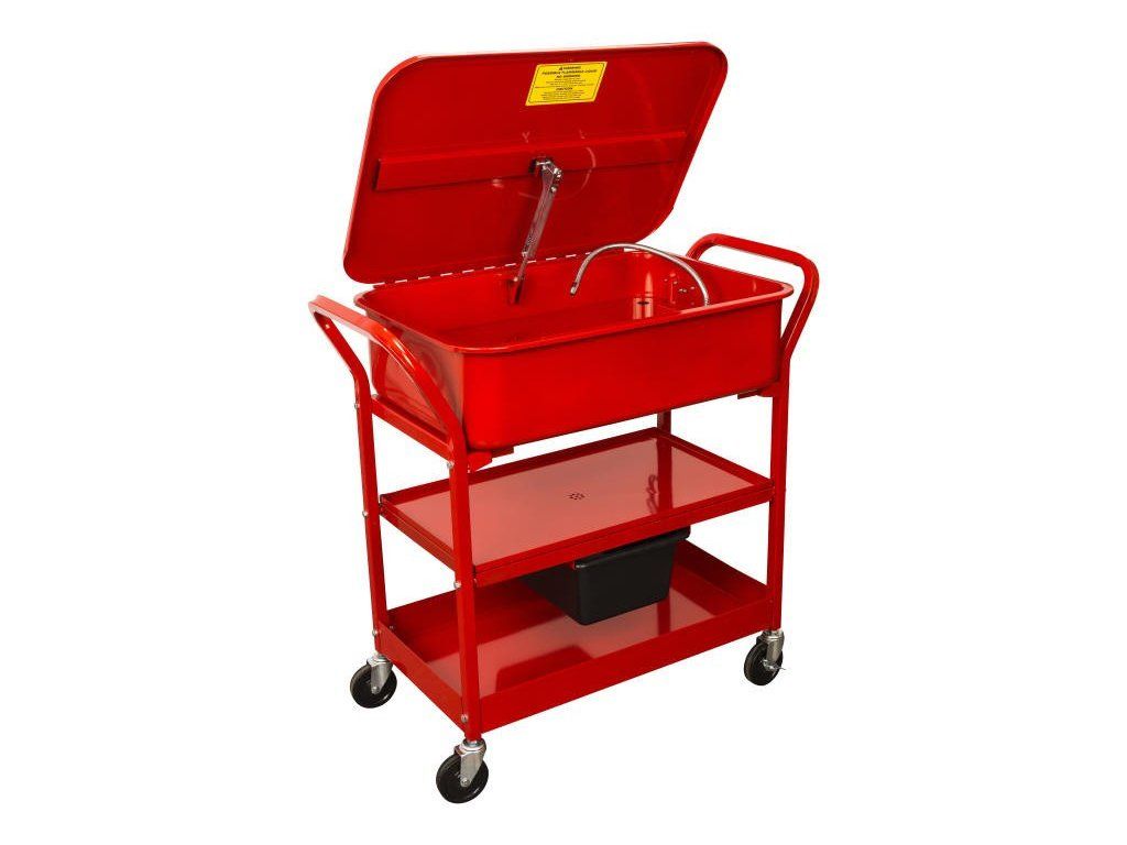 Profesionální mycí stůl s objemem 75 l, čerpadlem o průtoku 12 l/min, odkládací plochou a tryskou na ohebném krčku.