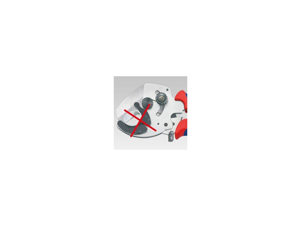K řezání silnostěnných plastových a vícevrstvých trubek ? 26 - 40 mm. řežou trubky na principu rohatky se západkou pomocí více zdvihů. S pohyblivými opěrnými čelistmi ke správné fixaci trubky pro pravoúhlý řez. Těleso nástroje: chromvanadová elektroocel ve zvláštní jakosti, kalená v oleji. Nůž: speciální nástrojová ocel, kalená v oleji, vyměnitelná.