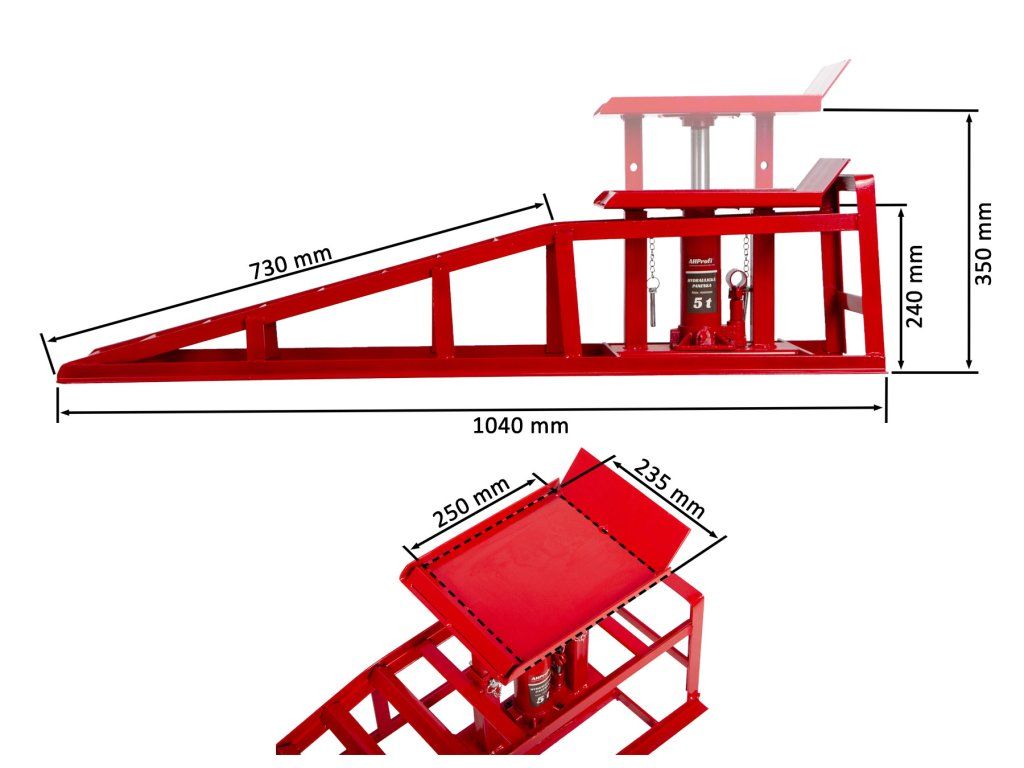 Nájezdové rampy s hydraulickým zvedákem, pár – 2 t – AHProfi
