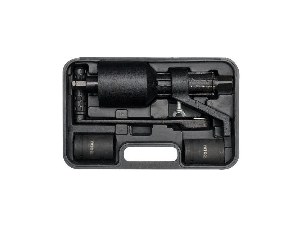 Dvou rychlostní násobič kroutícího momentu Yato YT-0782 s kroutícím momentem 4200Nm je přípravek například pro řidiče nákladních automobilů, kde za použití tohoto násobiče s lehkostí povolíte zatažené matice kol. Násobič umožňuje pracovat se dvěmi rychlostmi, s rychlou a pomalejší, dle zatažení šroubů. Rychlost se volí povytažením, nebo zatažením hřídele s klikou, takže lze převod volit plynule během práce. Součástí balení jsou dva běžně používané nástrčné klíče na kolech nákladních automobilů a to 32 a 33mm.