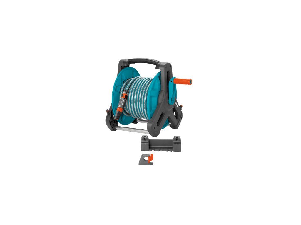 Hadicový naviják se zahradní hadicí o délce 20 m, průměr hadice 13 mm, možnost zavěsit na stěnu a přenášet.