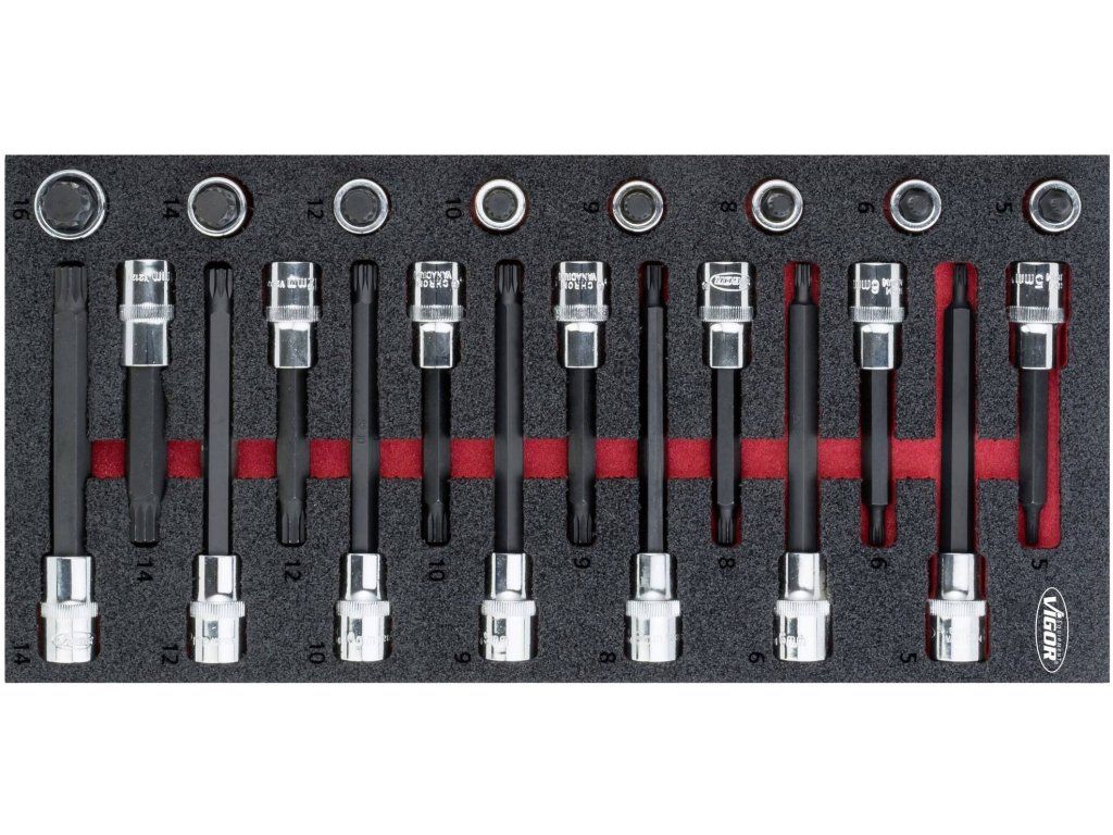 Sada nástrčných hlavic s bity XZN v pěnové výplni, 22 ks - Vigor
