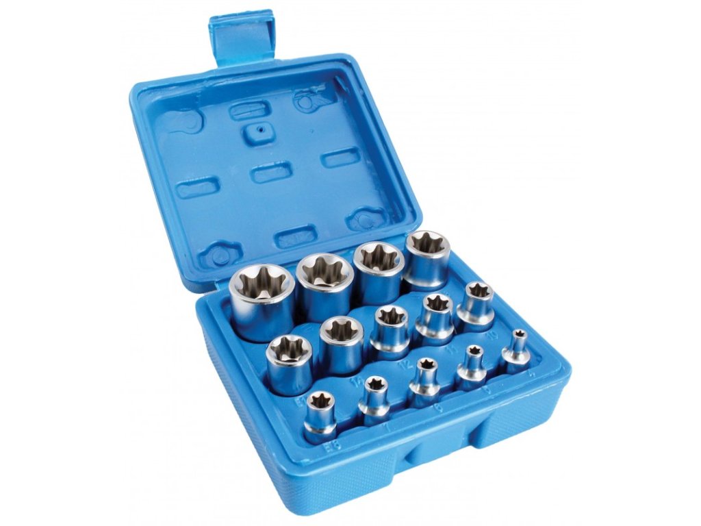 Nástrčné klíče, E-Torx, E4 - E24, 1/4", 3/8'', 1/2'', 14 ks - S-P14ES