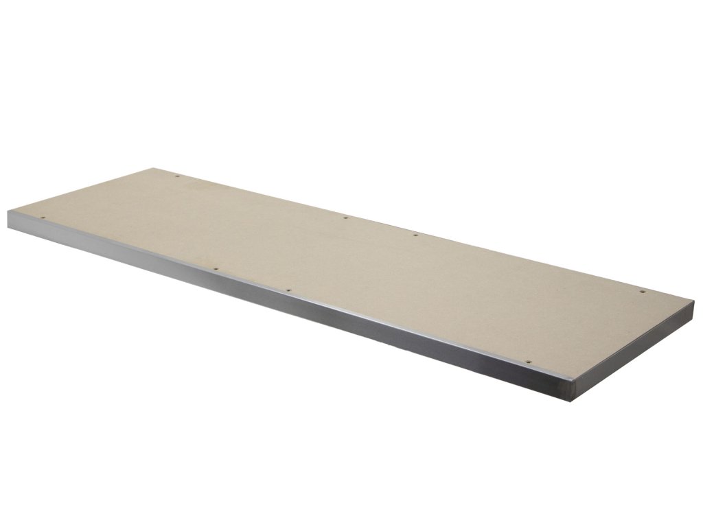 Nerezová pracovní deska do sestavy dílenského nábytku PROFI, nová hloubka 46,3 cm. Celkové rozměry 1360 x 463 x 38 mm, odolná překližka potažena plechem z nerezové oceli o síle 1 mm.