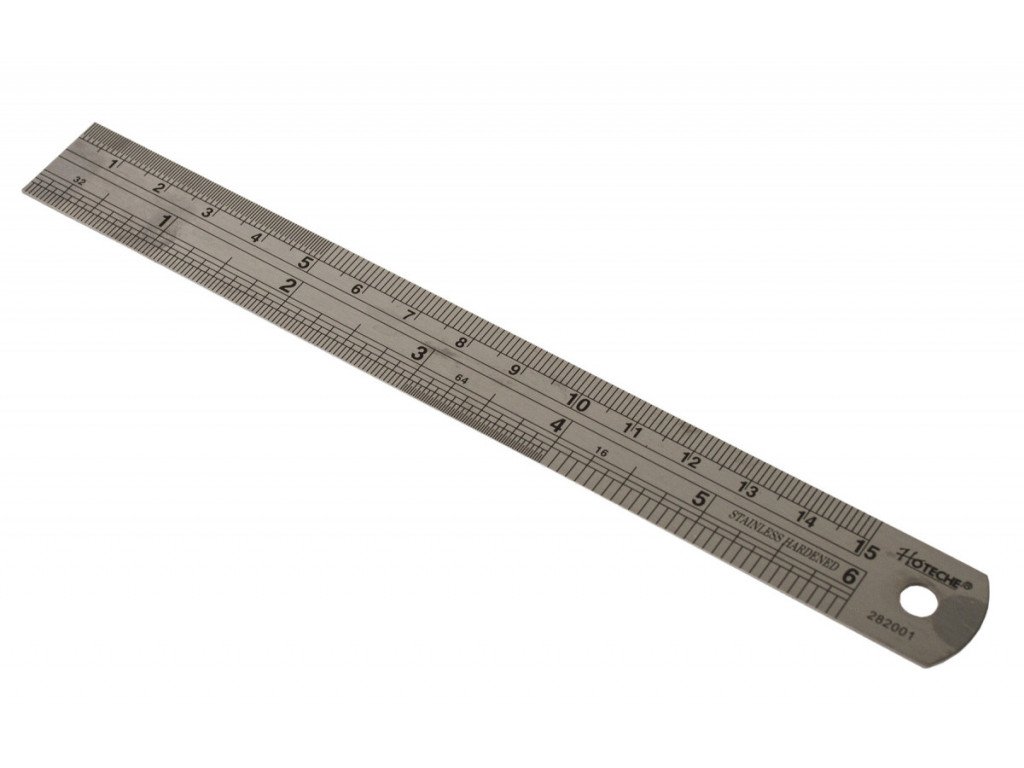 Nerezové pravítko od značky Hoteche s metrickou i palcovou stupnicí do 150 mm nebo 6-ti palců.