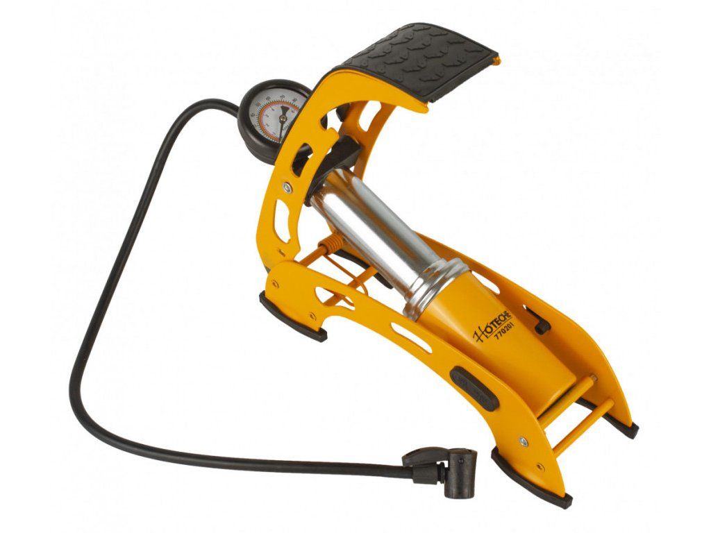 Kompaktní nožní hustilka od značky Hoteche je skvělým pomocníkem pro dofukování například kol automobilu, jízdních kol ale i matrací, míčů apod.