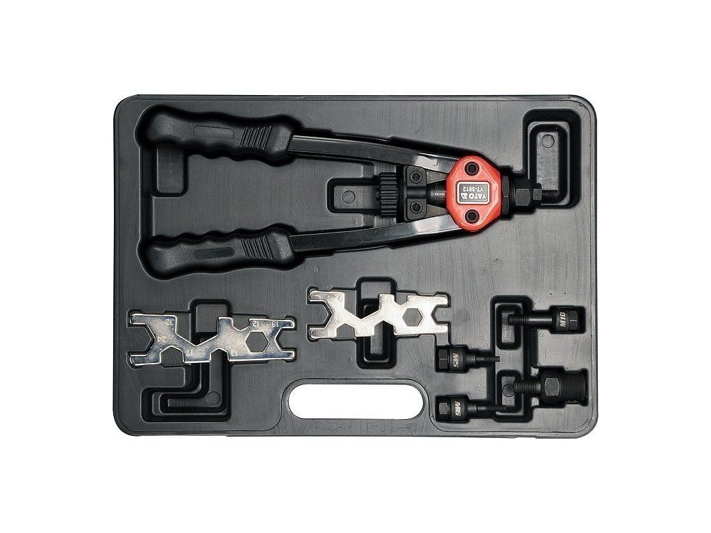 Rruční nýtovací pákové kleště Yato pro maticové nýty. Pákový mechanizmus významě snižuje námahu při práci.