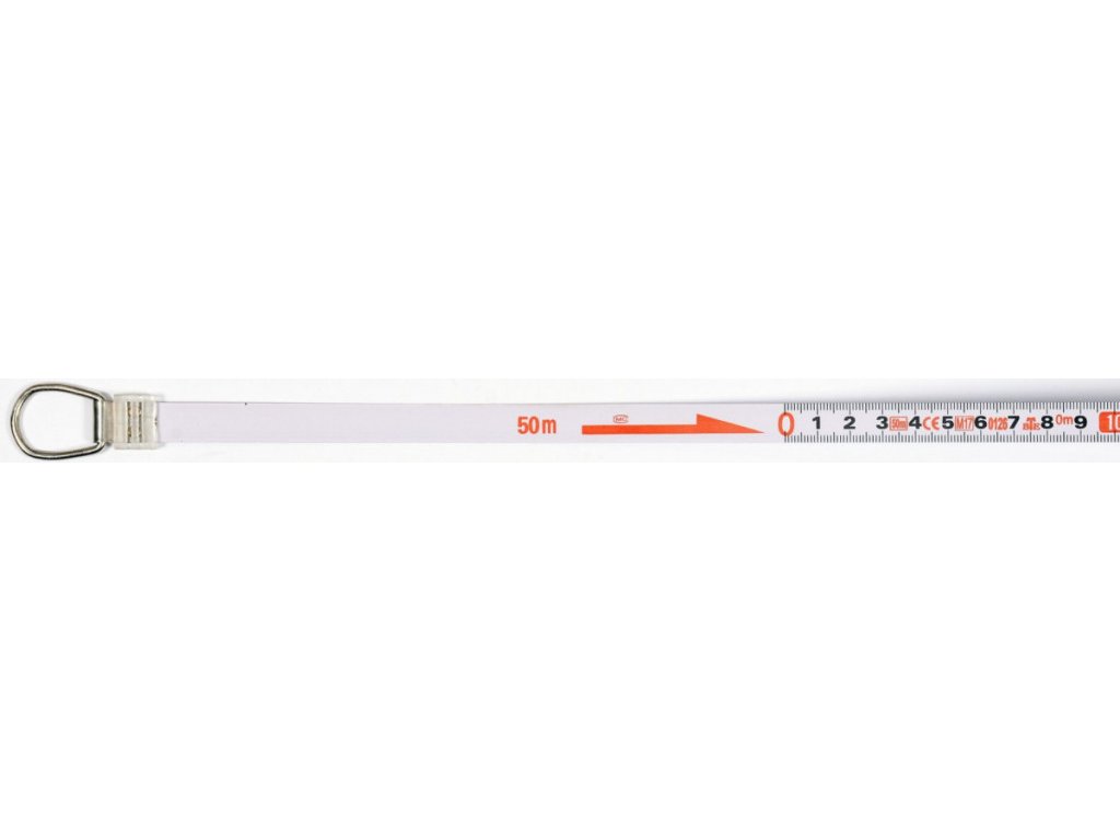 Měřící pásmo o délce 50 m s šířkou 13 mm.