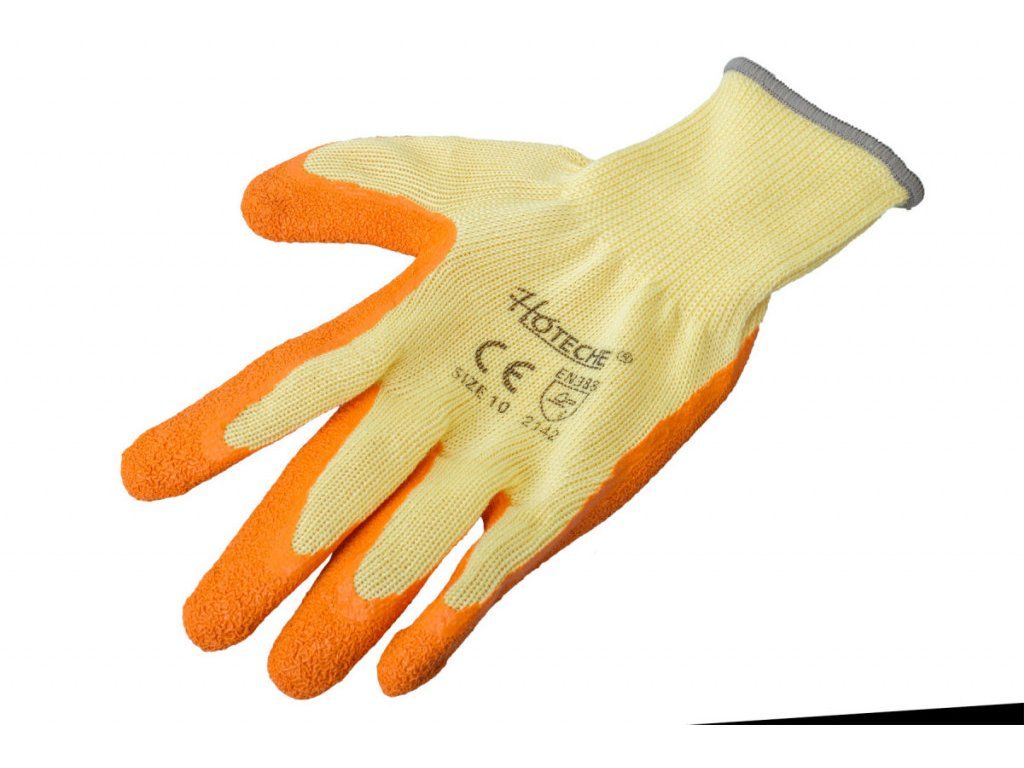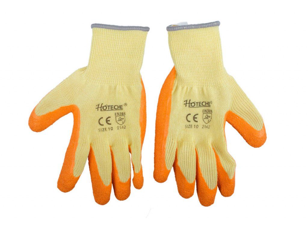Pracovní rukavice značky Hoteche jsou vyrobeny z latexu a polyesteru.