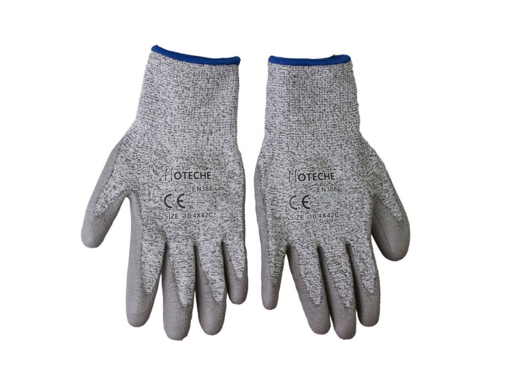 Jedná se o protipořezové ochranné pracovní rukavice od značky Hoteche v šedé barvě ve velikost 10 neboli XL.