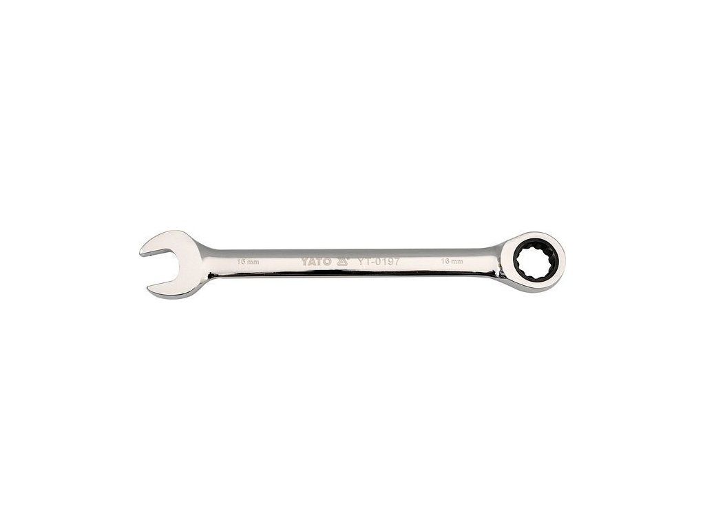 Ráčnový očkoplochý klíč Yato 13 mm je na jedné straně klasický stranový klíč, na straně druhé očkový klíč s dvanáctihranným profilem vybaveným ráčnou s jemným dělením 72 zubů. Tělo klíče je vyrobeno z chromvanadiové oceli CrV6140. Povrch je vyleštěn do vysokého lesku.