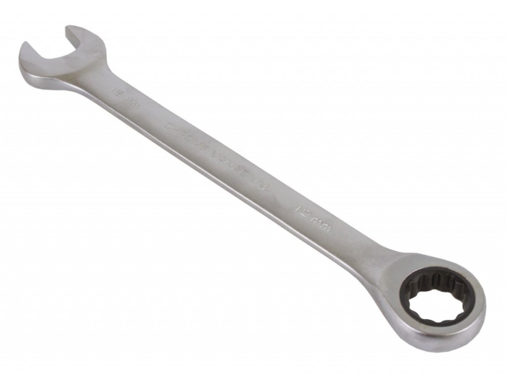 Očkoplochý ráčnový klíč o velikosti 19 mm a celkovou délkou 240 mm, 72 zubů.