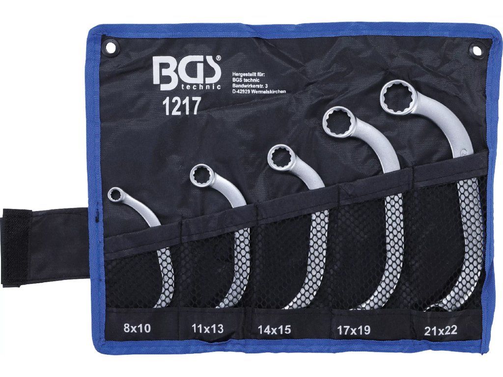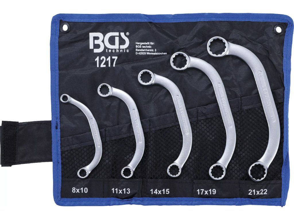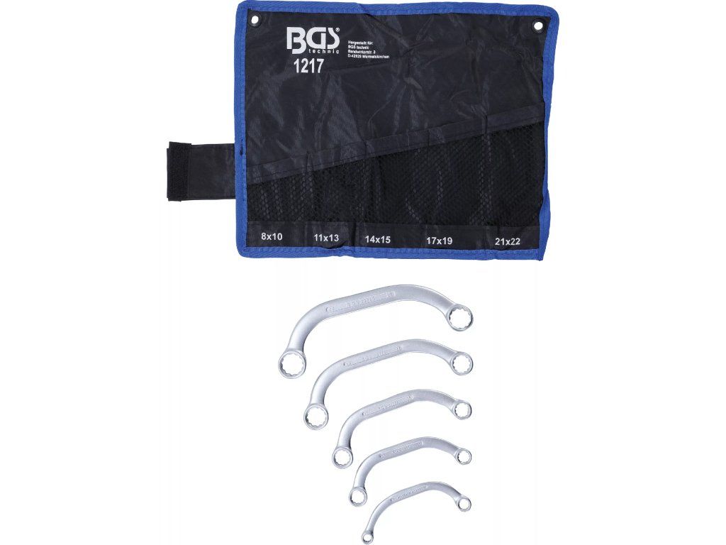 Kvalitní očkoploché klíče s "C" profilem v sadě 5 ks od německého výrobce, která je přehledně uložena ve srolovatelném pouzdře.