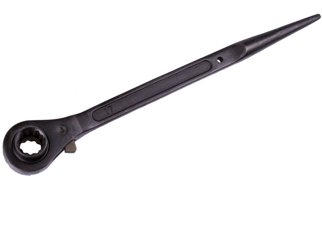 Očkový ráčnový klíč (průchozí) má velikosti 17 a 19 mm a je vhodný pro trubkové lešení.