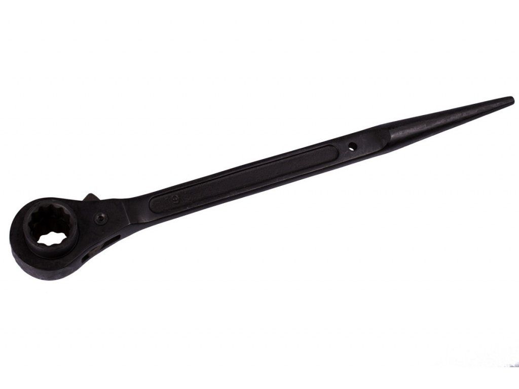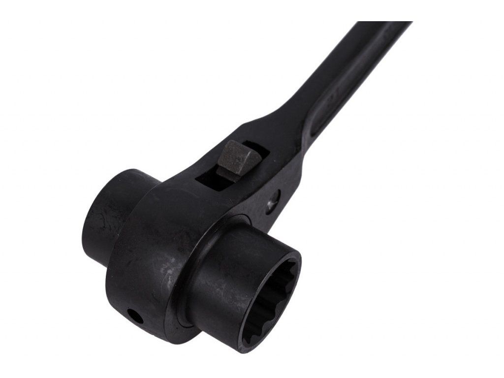 Očkový ráčnový klíč (průchozí) má velikosti 19 a 21 mm a je vhodný pro trubkové lešení.