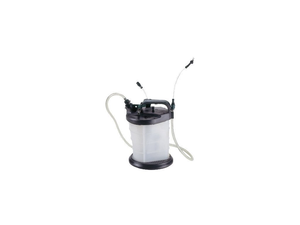 Pneumatická odsávačka brzdové kapaliny z tvrzeného plastu o objemu 6l, pro odvzdušňování brzd se dvěma připojovacími adaptéry.