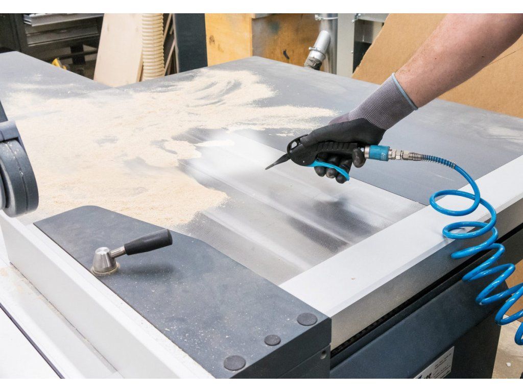 Ofukovací pistole s širokou plochou tryskou je ideálním nástrojem pro rychlé a efektivní odstraňování třísek, prachu a jiných nečistot, zejména z těžko přístupných míst.