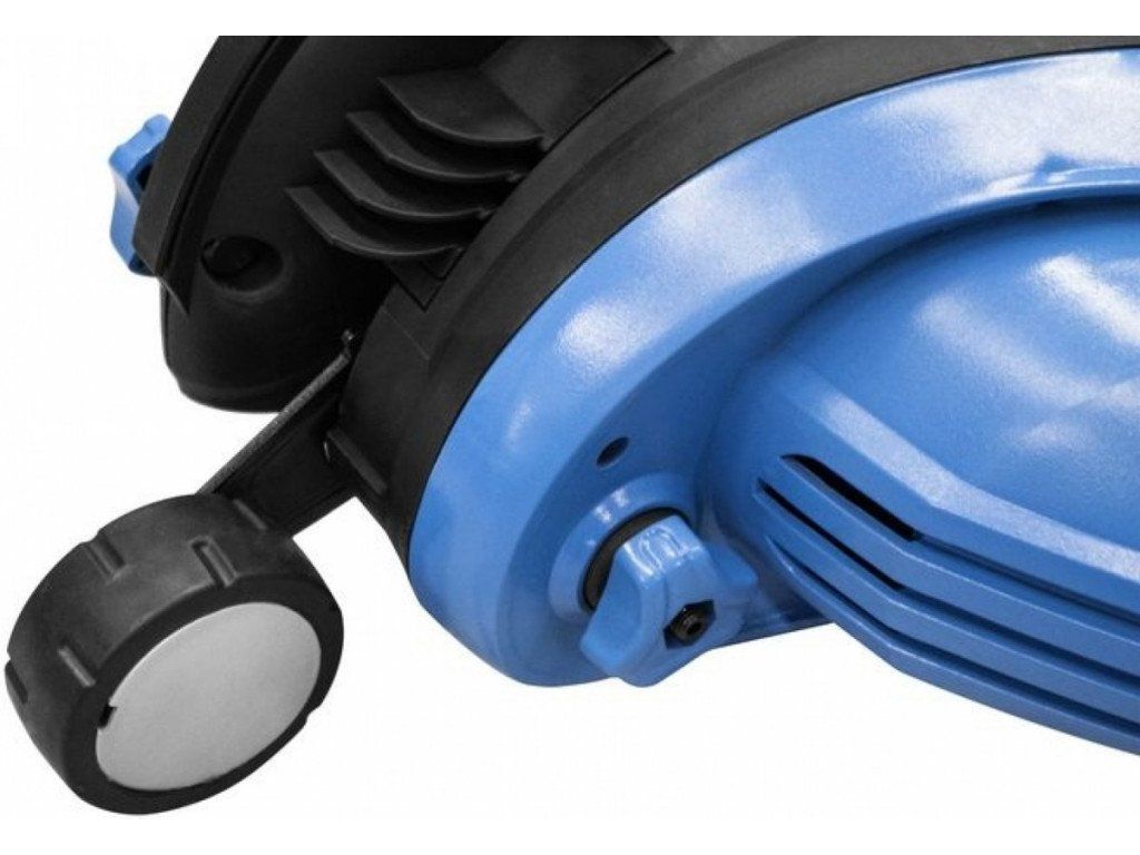 Konstrukce: řezný nůž (d x š: 190 x 80 mm, se dvěma břity; včetně ochranného vodítka), výškově nastavitelné pomocné madlo, ergonomicky tvarovaná tlačná rukojeť.