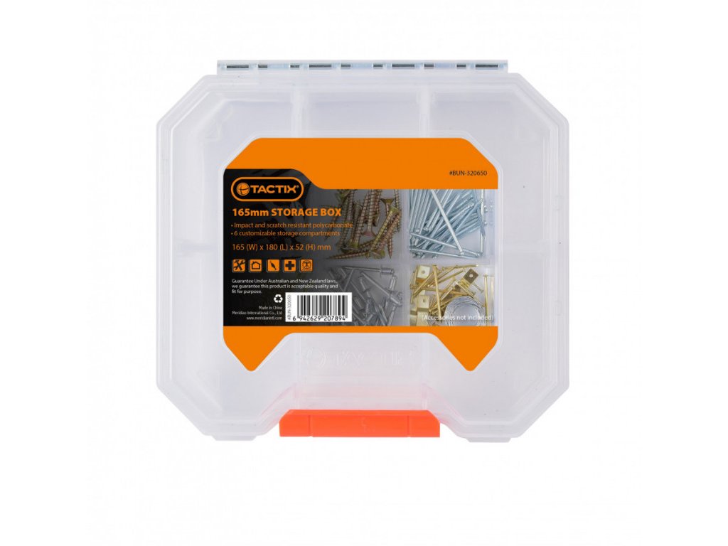 Vhodný pro drobný materiál do dílny i domácnosti, 6 přihrádek, 180 x 165 x 52 mm.