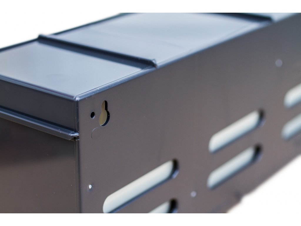 Na zadní straně jsou připraveny otvory pro zavěšení na zeď, což umožňuje snadnou instalaci i na závěsné systémy. Každá zásuvka má popisovací štítek a lze ji kompletně vyjmout pro snadné čištění nebo montáž.