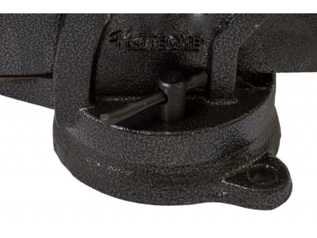 Kvalitní otočný dílenský svěrák od značky Hoteche otočný okolo horizontální osy o 360°, který se hodí na občasné i denní používání.