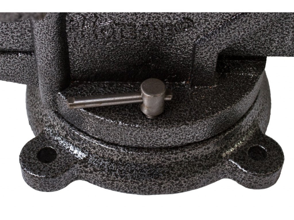 Svěrák disponuje pojistkou, která brání otočení při práci. Po uvolnění pojistky můžete svěrák otáčet podle potřeb.