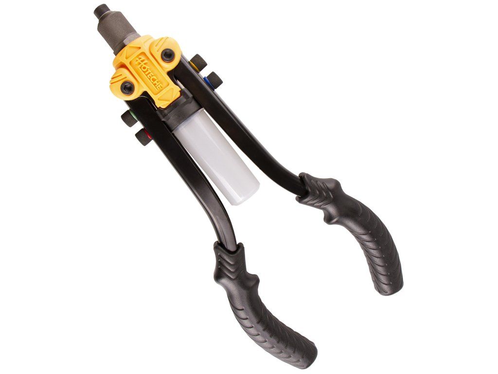 Ruční pákové nýtovací kleště od značky Hoteche o délce 255 mm využijete na vytvoření spojů za pomoci hliníkových trhacích nýtů o průměru 2,4; 3,2; 4,0 a 4,8 mm.