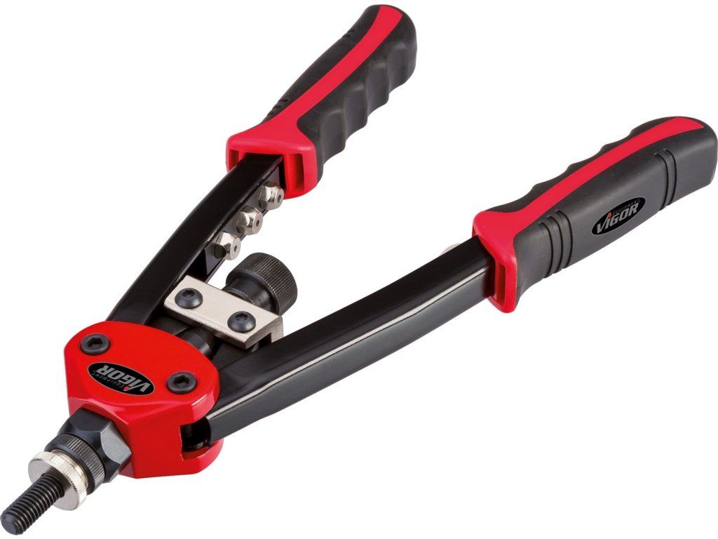 Univerzální nýtovací kleště od kvalitní německé značky VIGOR, pro nýtovací matice M5-M10 a mosazné, měděné, ocelové a nerezové nýty 3.2-6.4 mm.