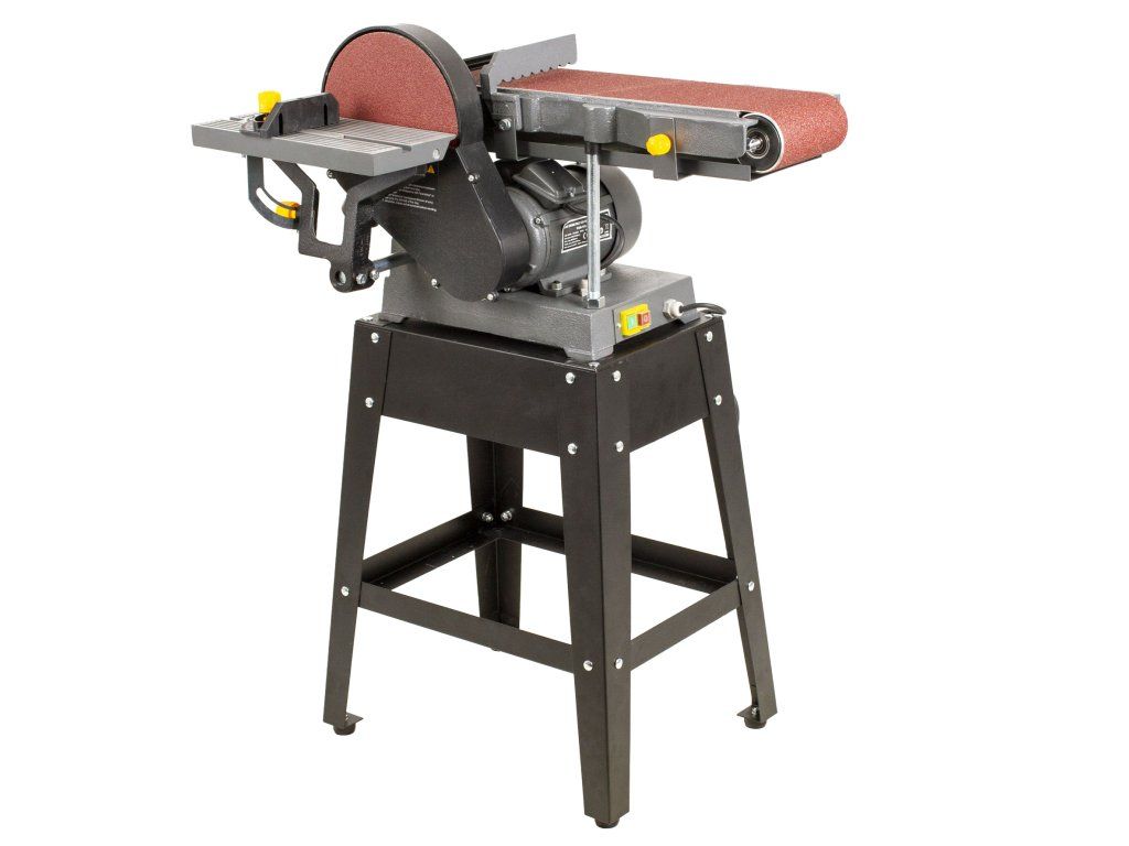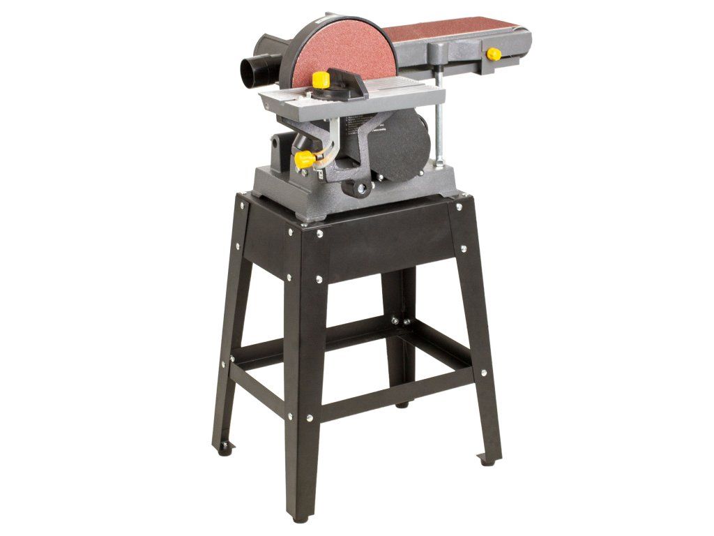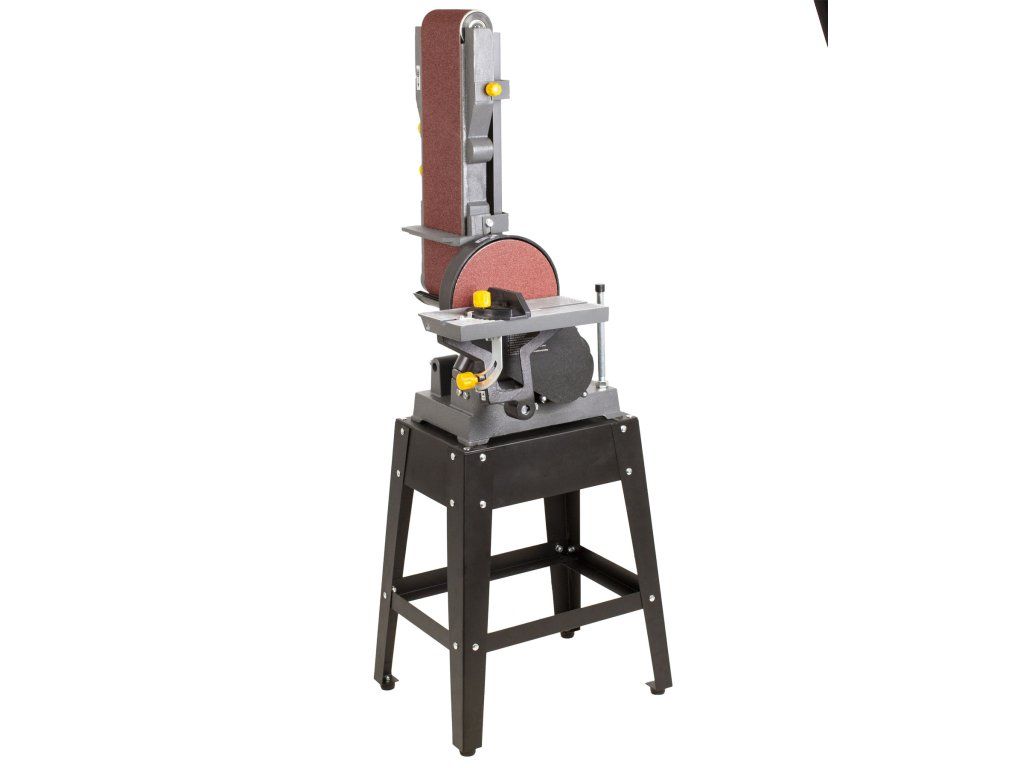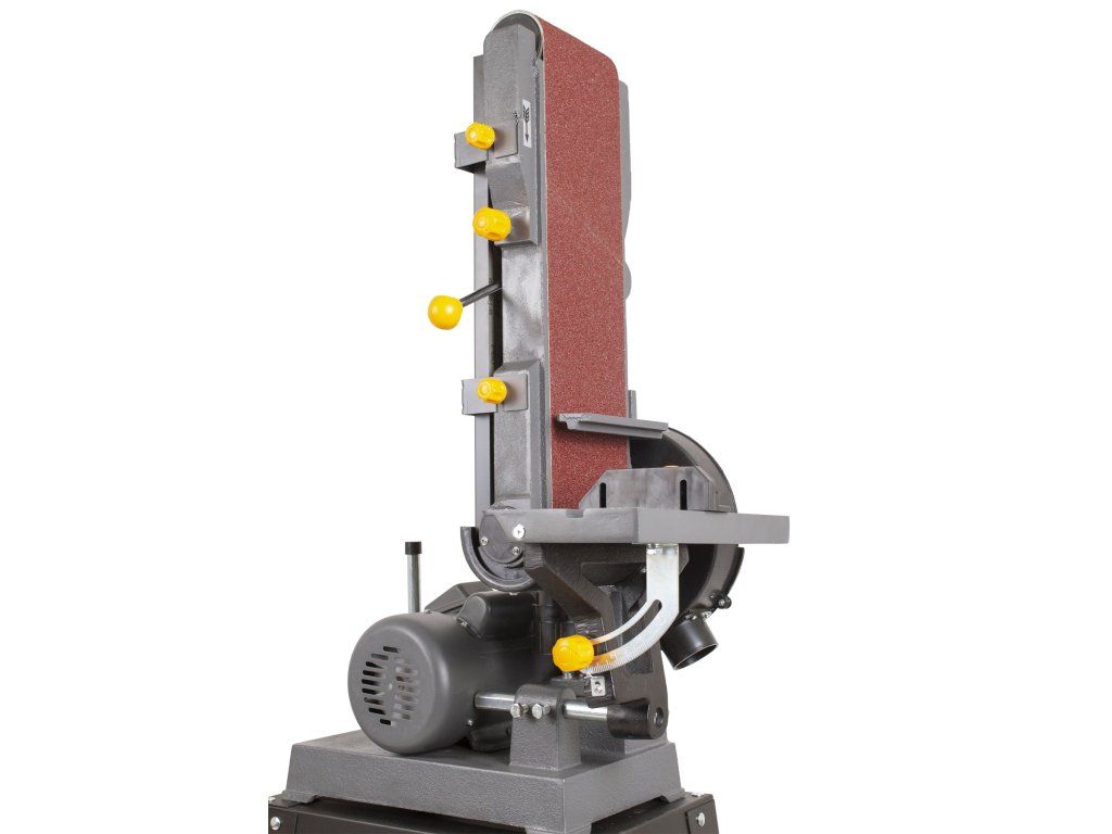 Bruska nabízí několik možností broušení. Můžete brousit buď na brusném páse s šířkou 150 mm, celkovou délkou 1220 mm a možností nastavení horizontální nebo vertikální polohy nebo na bočním brusném kotouči o průměru 230 mm.