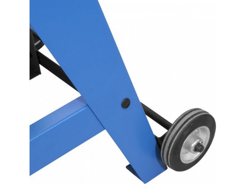 Stabilní a pevná konstrukce: Litinový rám pily, tříbodové vedení pilového pásu s kuličkovými ložisky a stabilní podstavec se dvěma transportními koly zajišťují vysokou stabilitu při práci a snadné přemisťování.